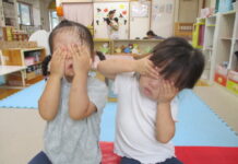 すみれ1歳児 おおきくなったかな? 2019年4月26日 301 今日はすみれ組さんになって初めての身体測定をしました。どのくらいおおきくなったかな? お着替えも自分でやってみるよ!上の服はひっぱって、ズボンはぎゅー!!