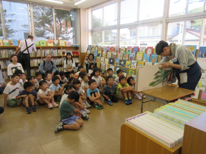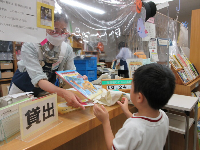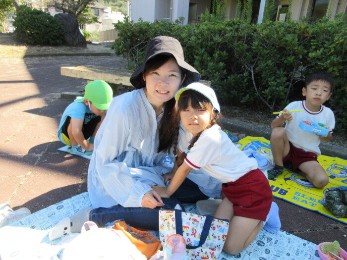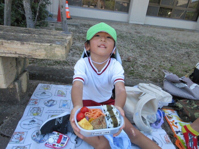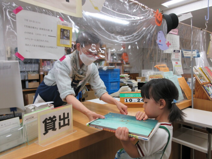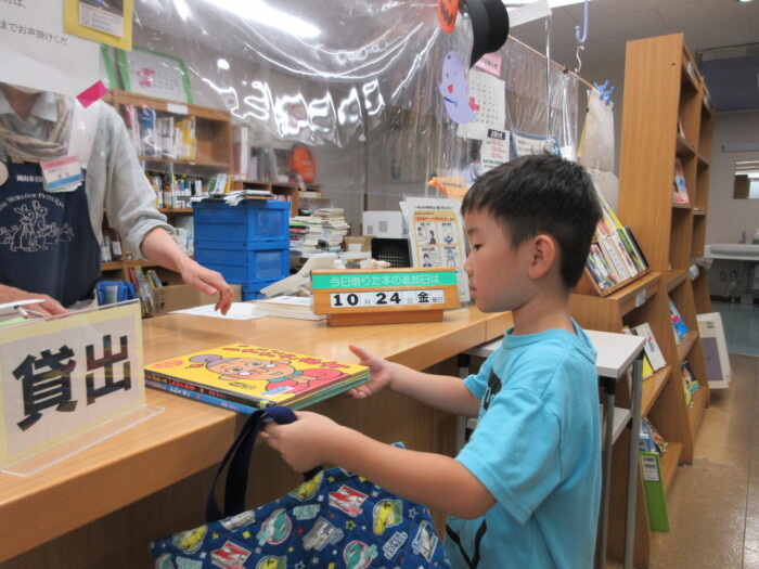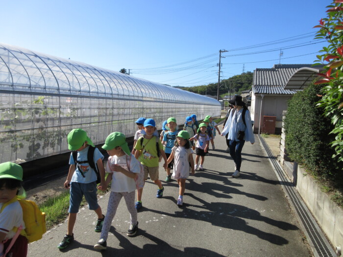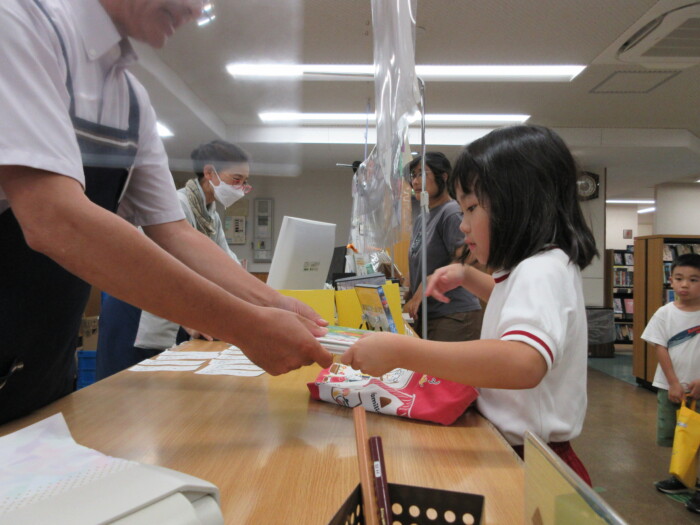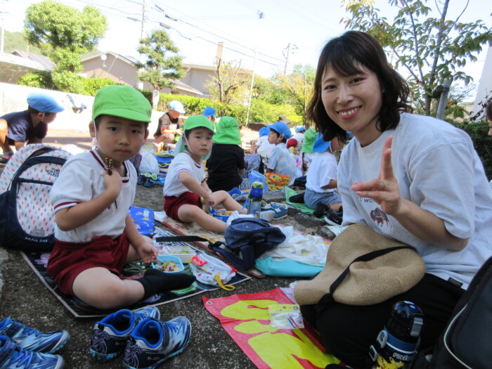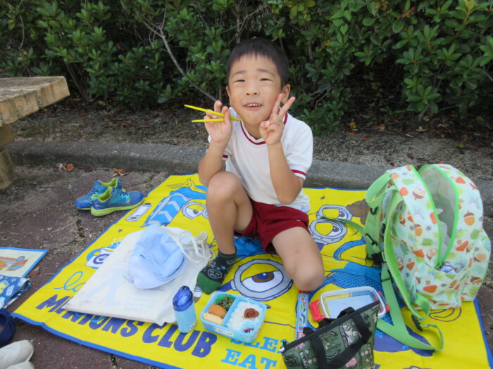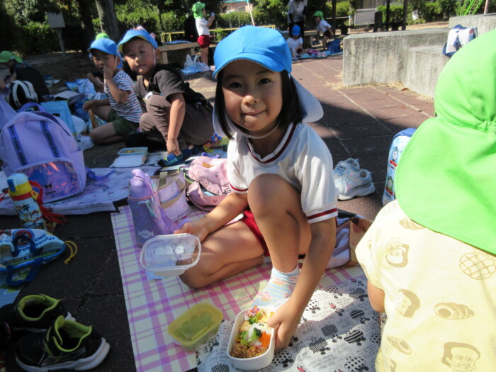 きく5歳児うめ4歳児 しっかり歩きました 2025年10月10日 144 うめ、きく組は健脚活動で図書館・公民館まで歩いていきました。道のりは長く「まだ着かない?」と言いながらも、きく組はうめ組さんをリードしながら頑張って歩いていました。図書館に着いたときは「やっと着いたね」とみんなほっとした様子。図書館では読み聞かせをしてもらったり、絵本の紹介をしてもらい好きな本を2冊選んで借りました。その後は、公民館に移動して待ちに待ったお弁当をみんなで食べました。今日はお弁当のご協力ありがとうございました。みんな「おいしいね♡」と言いながら食べていました。