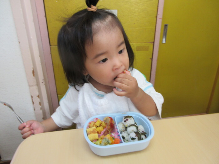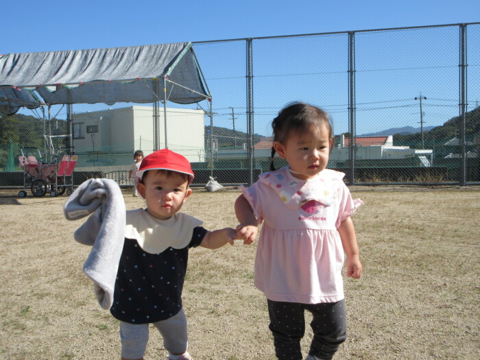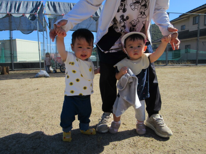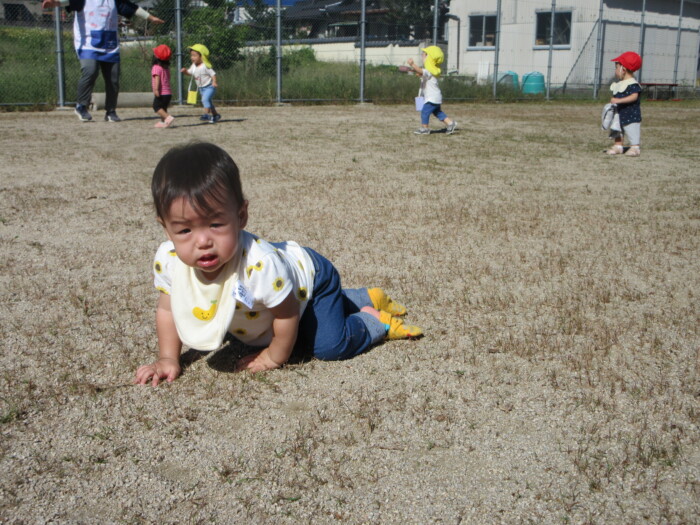 たんぽぽ0歳児 健脚活動楽しかったね! 2025年10月14日 36 先週は健脚活動がありました。たんぽぽ組さん、初めての広場デビューです! 広い広場でテクテクあるいたり、ハイハイしたりとそれぞれ楽しむことができていました。 外で遊んだあとは、おいしいお弁当タイム‼ 子どもたちもお弁当を目の前に、何かな?という表情を浮かべていました。 朝早くからお弁当作りありがとうございました!