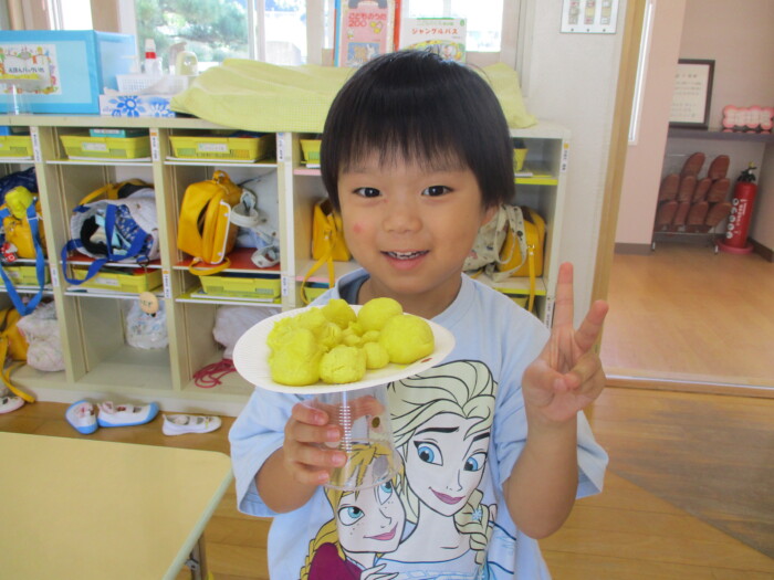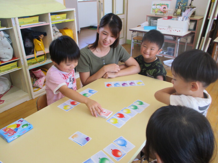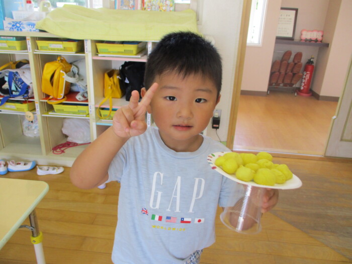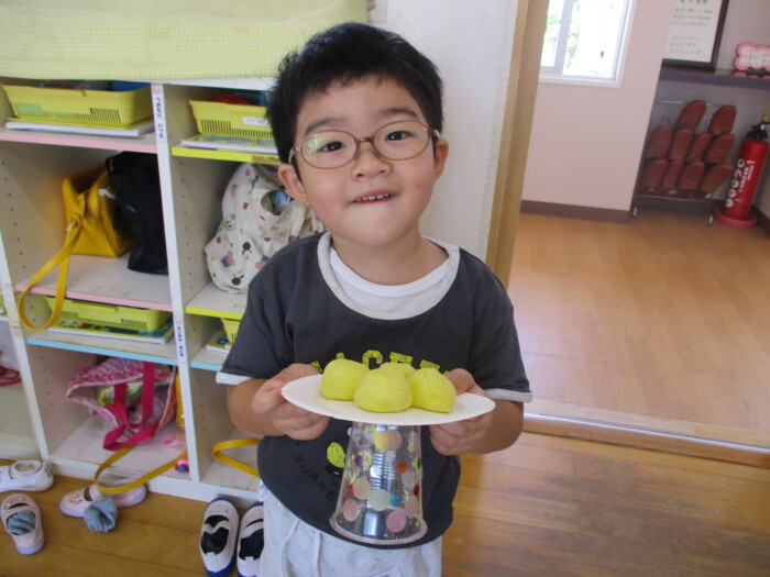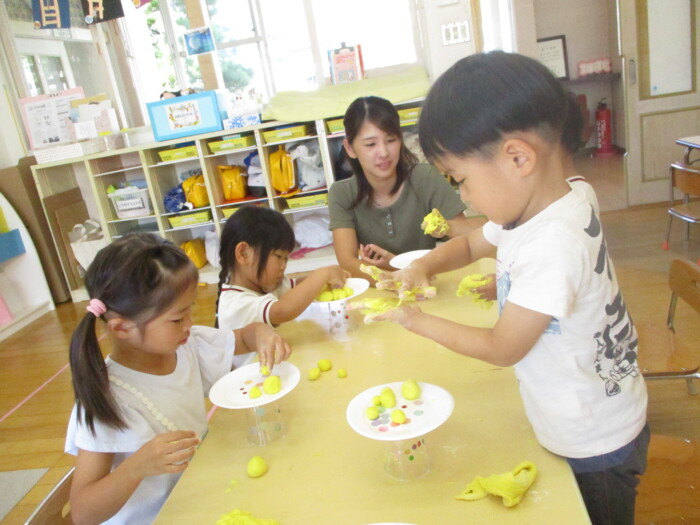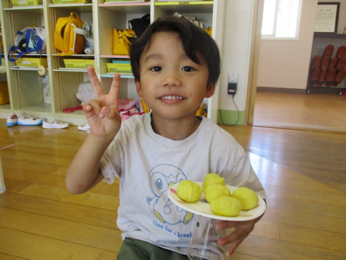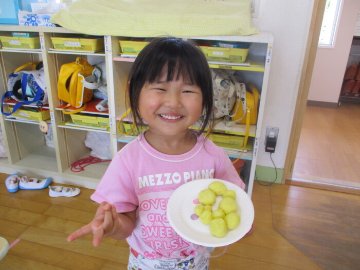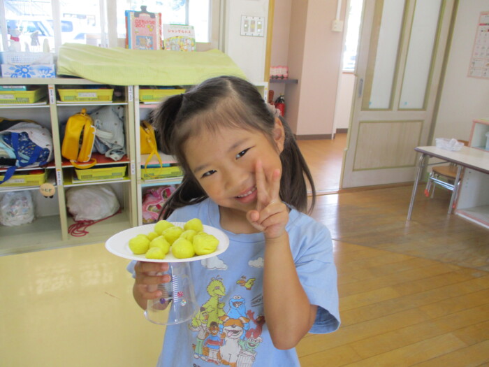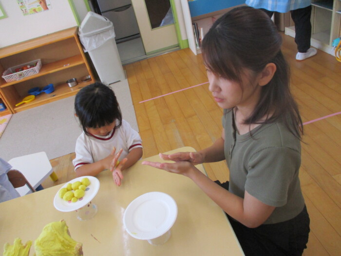 もも3歳児 参加保育がありました♪ 2025年10月6日 48 今日はもも組にママ先生が来てくれました。 中秋の名月ということで、一緒に団子作りをしたり、カードゲームをしたりしました。 楽しい参加保育をありがとうございました。 今日は子どもたちが作った団子を飾ってお月見をしてください♪