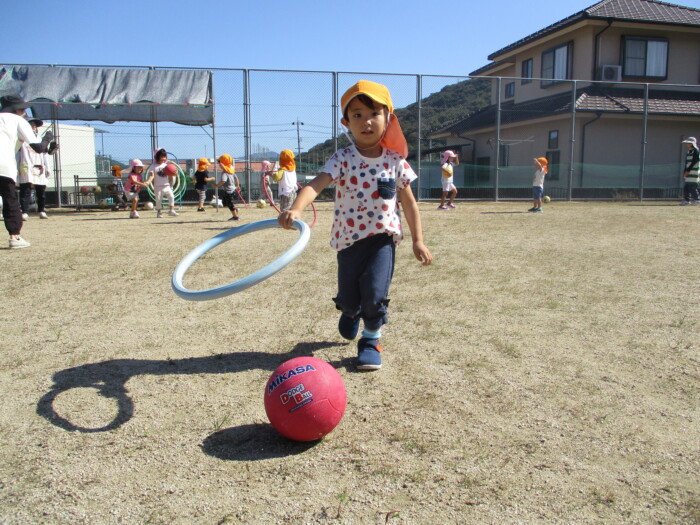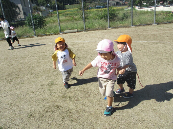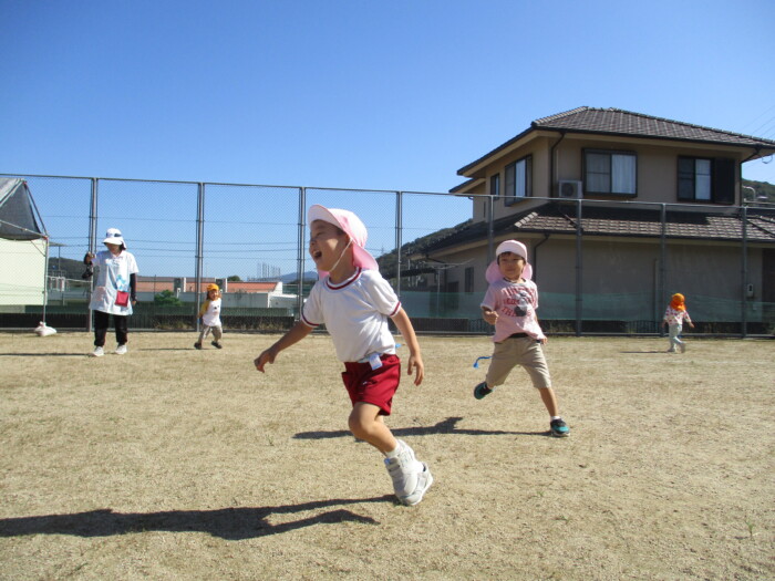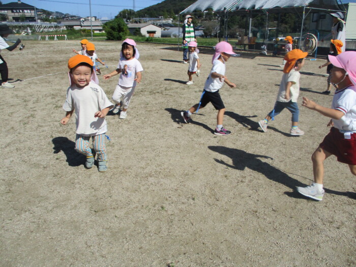 「よーいスタート!」の合図で始まると「きゃー!!!」と一斉に走り出します!