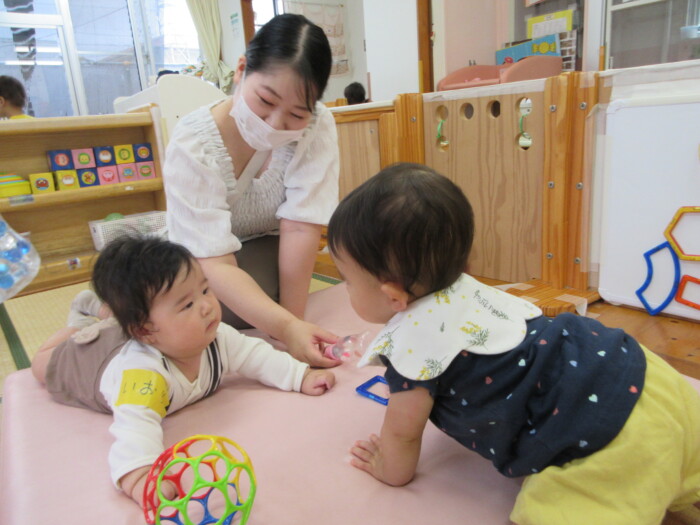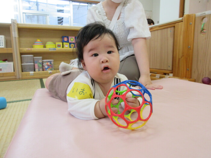 園のくらし地域の子育て 10月園開放 2025年10月16日 19 今日は0歳児のかわいいお友だちが遊びに来てくれました。 お母さんに見守られながら、お友だちの中でおもちゃで遊んでくれました。 また遊びに来てくださいね!